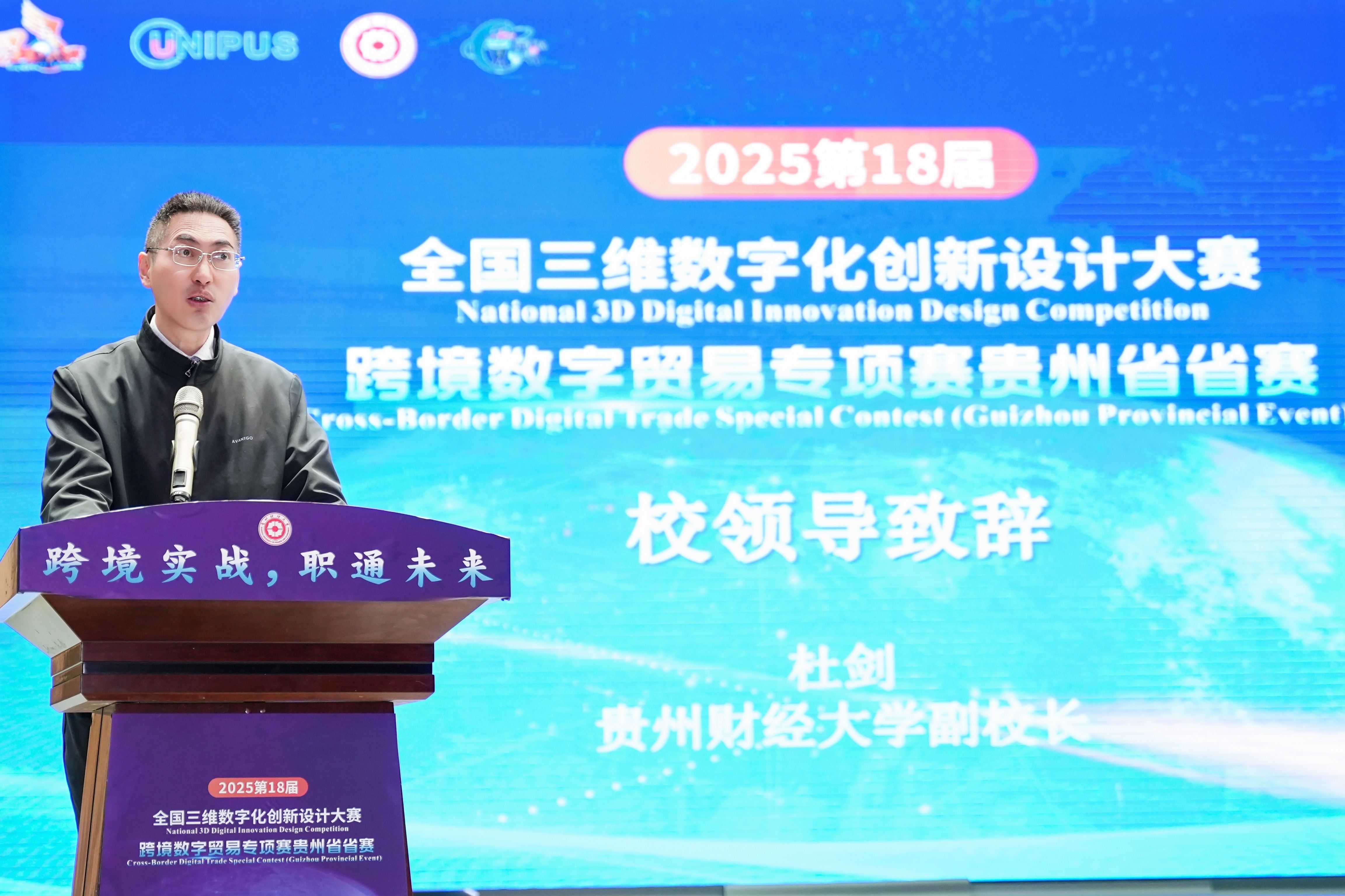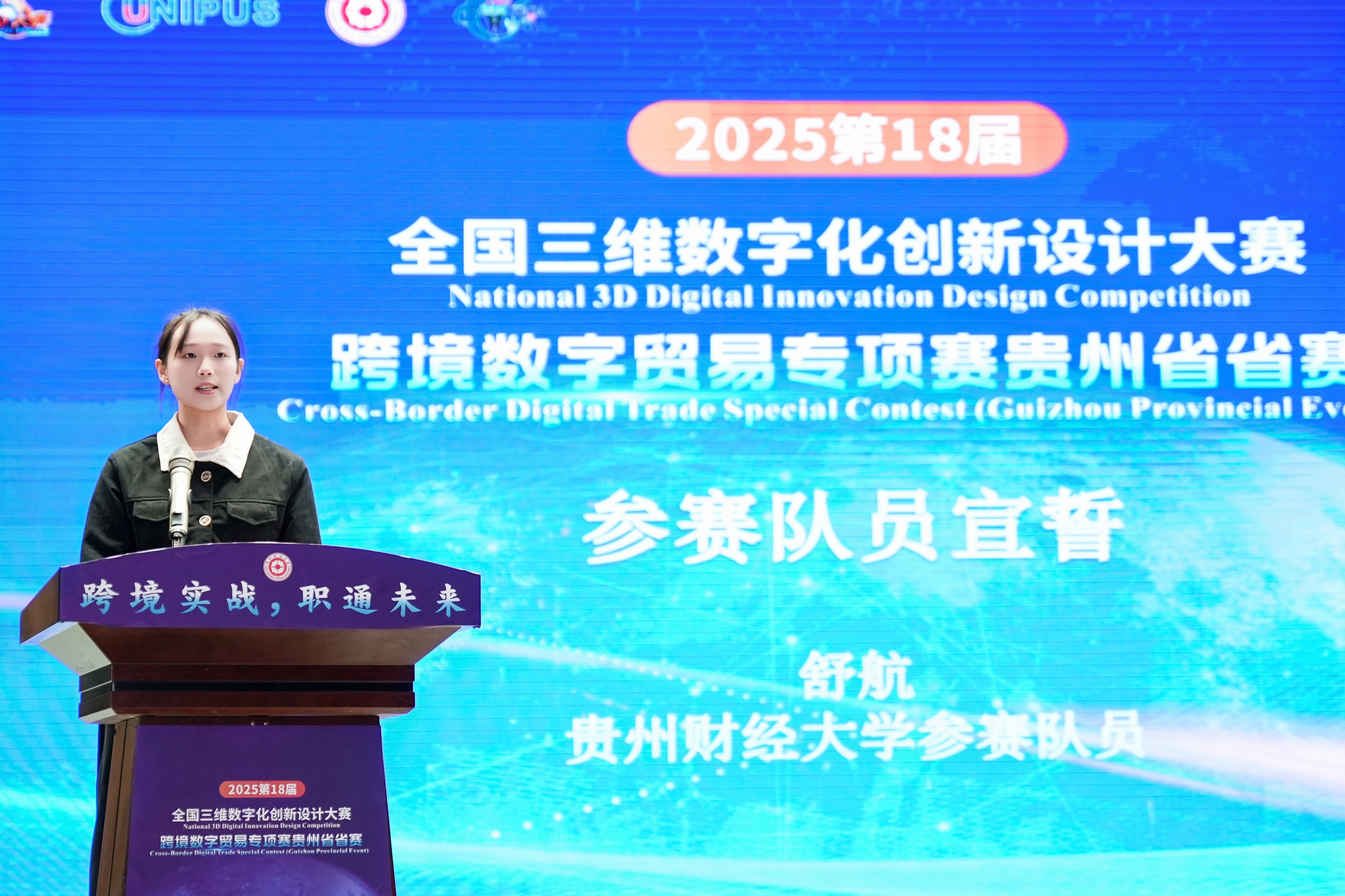 沙静 图文报道)10月25日,由贵州财经大学、北京外研在线数字科技有限公司、贵州省电子商务协会共同承办的,2025第18届全国三维数字化创新设计大赛(以下简称全国3D大赛)跨境数字贸易专项赛贵州省省赛在贵州财经大学学生活动中心举行。贵州财经大学副校长杜剑,对外经济贸易大学现代服务业研究中心首席教授陈进,组委会成员单位北京外研在线数字科技有限公司首席内容官兼职业教育事业部总经理徐一洁,全国三维数字化创新设计大赛组委会秘书处副主任姜宛辰,贵州电子商务职业娱乐城